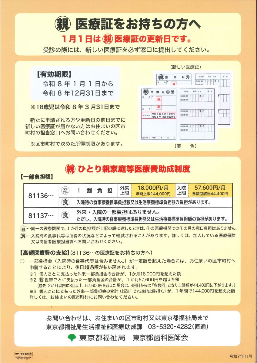 マル親医療証をお持ちの方へ